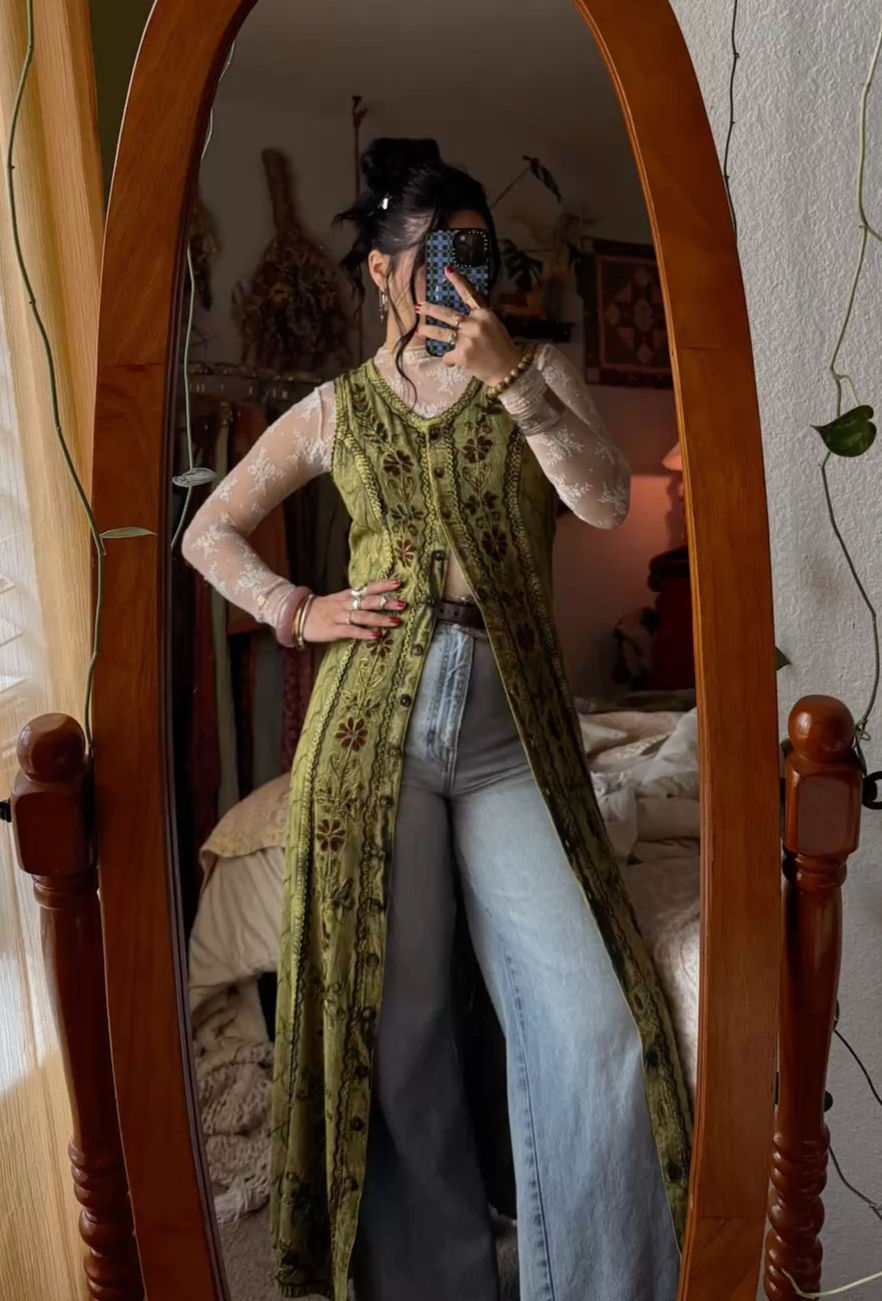 Stunning embroidered one of a kind jacket with snakes, a moon and eye, only 1 of each available!